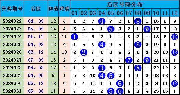 综合分析,本期单挑后区推荐05 12