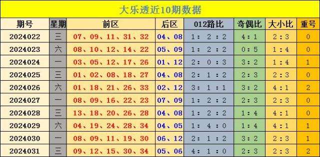前区大小:上期前区大小比为2:3,前10期前区大小比为24:26,本期看好前区大小比2:3。