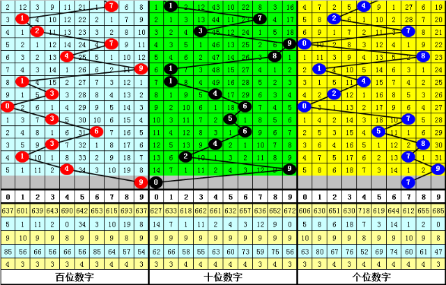 首位号码:上期为:4,遗漏8期,为温码,温码明显活跃,近10期出现6个,本期防温码再开,看好9。
