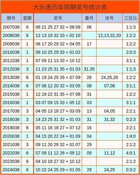 大乐透历史同期奖号统计图