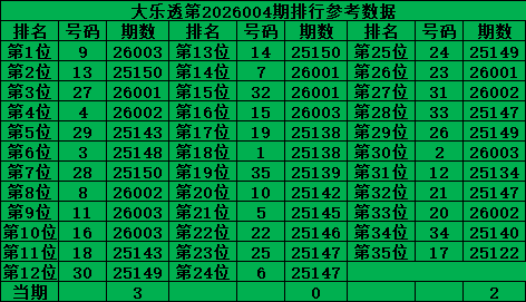 综上所诉超级大乐透第2026004期推荐号码: