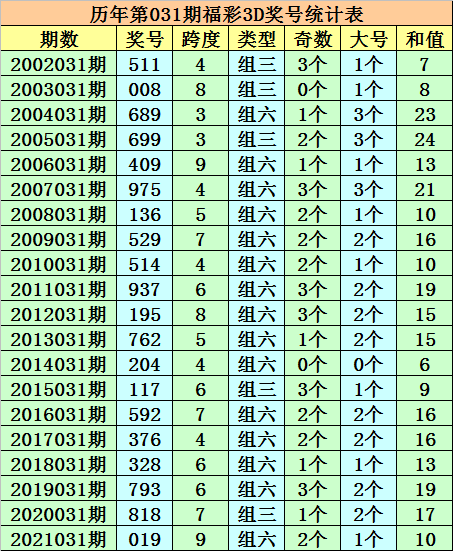 历年第031期福彩3D同期奖号为:511 - 008 - 689 - 699 - 409 - 975 - 136 - 529 - 514 - 937 - 195 - 762 - 204 - 117 - 592 - 376 - 328 - 793 - 818 - 019。