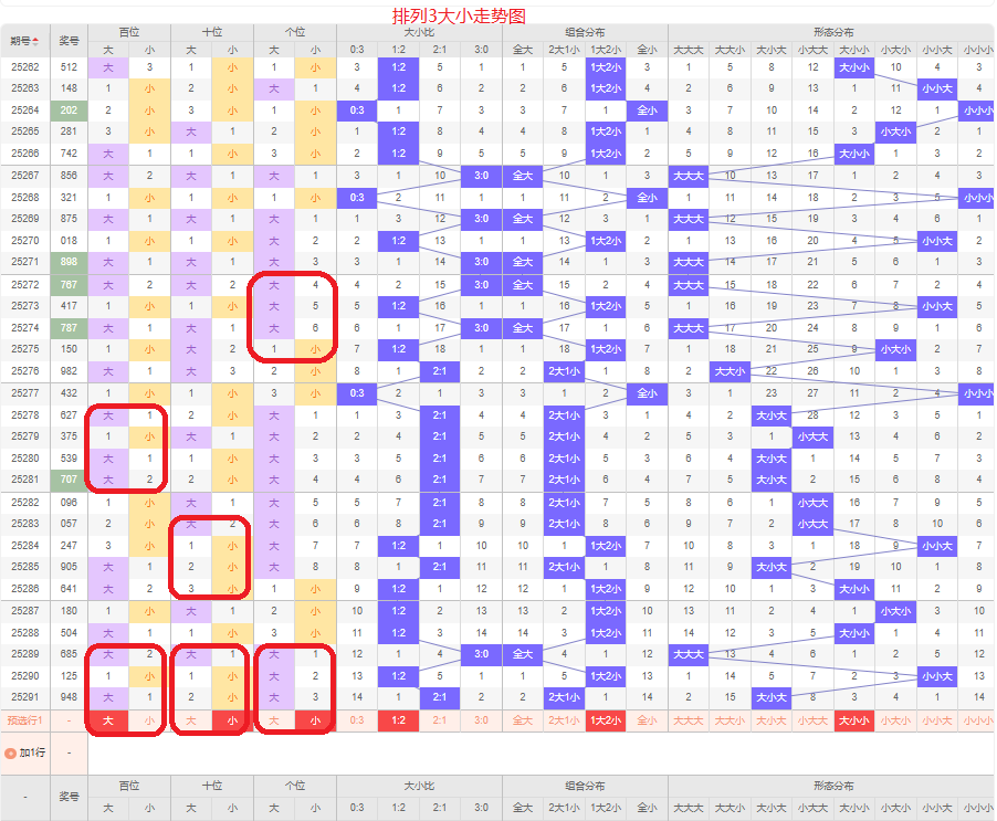 上一期大小比为2:1,两大的号码组合,近五期大号出8次,小号出7次,大小号码出现较平均,上一期是两大的号码组合,本期侧重两小的号码组合,百位本期侧重的大号码,十位本期侧重小号码,个位侧重小号码,侧重大小小或者大小大的号码组合,根据大小形态五码定位56789/01234/01234或者56789/01234/56789