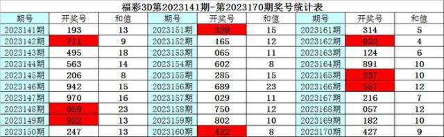上期回顾:福彩3D第2023170期奖号为:427,其中奖号组选类型为:组六,奇偶比为1:2,大小比为1:2,012路比为0:2:1,和值为13,跨度为5。