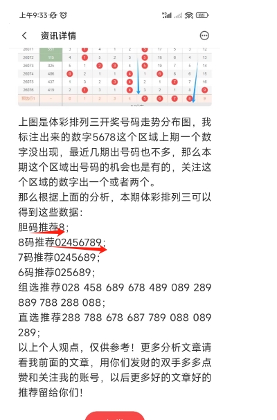 上图是上期的体彩排列三号码分析文章截图,我最后推荐的胆码,8码正确,这个你们去看上期的文章吧。