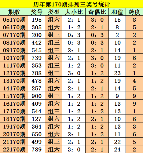 排列三第2022170期奖号:789,和值24,跨度2,大小比3:0,奇偶比2:1。