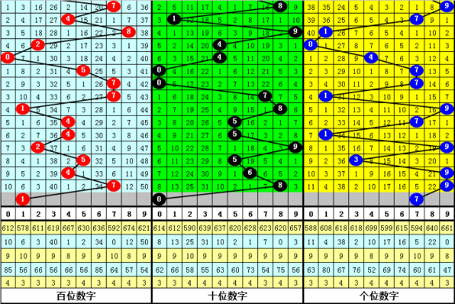历年第171期排列三奖号中,开出次数最多三码为:0、4、9,本期注意号码:0。