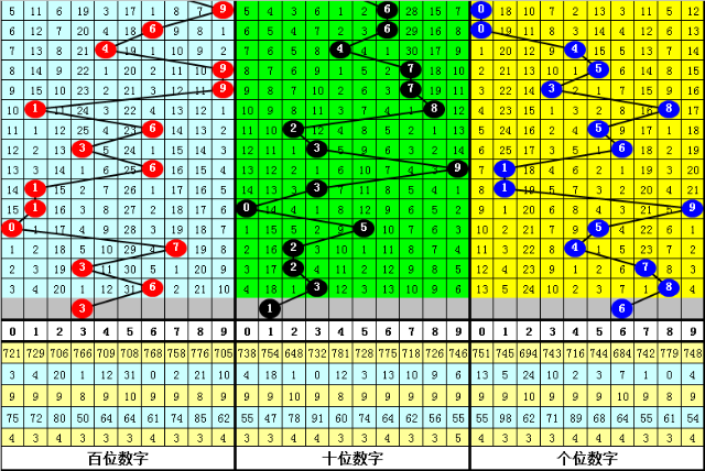 百位上期开出号码6,上升3点位,本期注意该位下降,参考号码3。