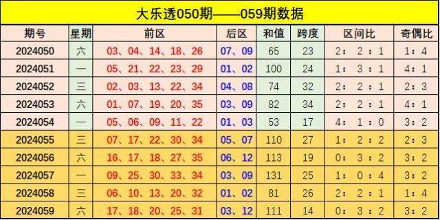 大乐透24059期开奖,本期奖号:前区17、18、20、25、31后区03、12;当期前区号码三区比为0:3:2,奇偶比为3:2。形态方面,前区开出连号17、18;开出重号20。