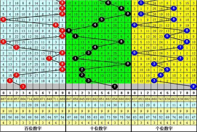 十位:上期为3,近10期012路比为4:3:3,其中0路号遗漏2期出现,本期排除0路号,注意1路号出现,关注7。