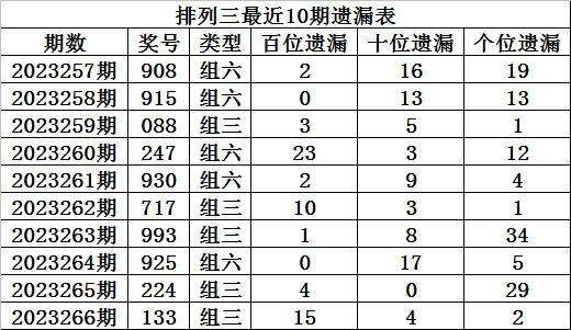 上期回顾:排列三第2023266期奖号:133,组三,直选遗漏总值为21期。