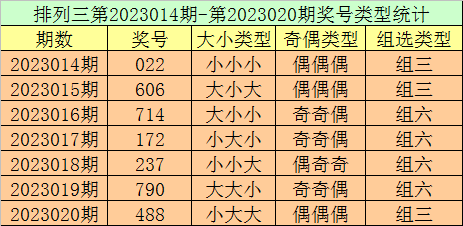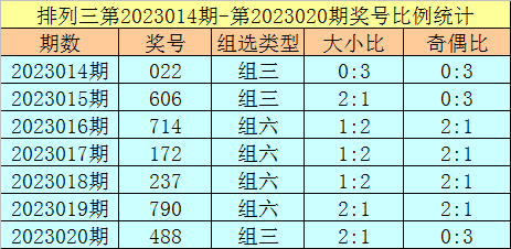 排列三第2023020期回顾:奖号488,奇偶比0:3,大小比2:1,和值20,类型:组三。