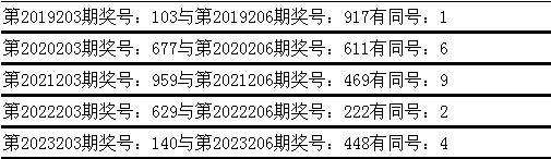与前期历史同期奖号对比分析,在最近五年开奖中,第203期同期奖号与第206期同期奖号都出现了相同号码: