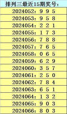 四叔体彩排列三第2024067期推荐: