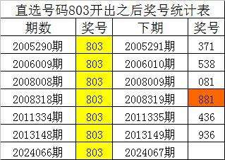 从上表统计可以看出,直选号码803开出之后,其下期奖号: