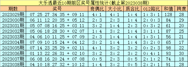 体彩大乐透第2023039期定位奖号属性分析: