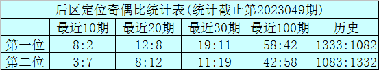 第二位:该位奇数号码近期走势相对较冷,目前仅遗漏了1期,近期看好奇数号码继续回补,本期参考号码05。