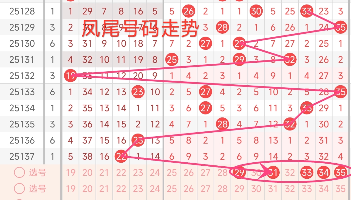 上期凤尾号码为22,振幅下降了1点,开出偶数号码。从近期凤尾号码的走势来看,近期凤尾号码波动较大。上期凤尾为22、为偶数号码。根据近期凤尾号码走势来看,近期凤尾号码主要在红二区与红三区之间徘徊。近两期凤尾号码开出较小,连续2期凤尾号码开出红二区号码,红三区号码断区,本期预计凤尾号码会有所上升回补大号码区域,预计本期凤尾号码可以关注26-35区间开出。本期还需注意连续多期漏出的号码,需重点关注,有回补凤尾号码的趋势 。综合考虑,本期凤尾号码可以重点关注29、31、33、34、35。