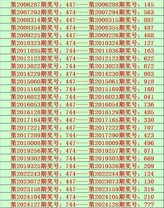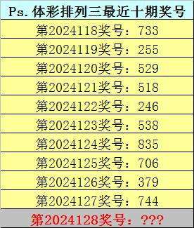 开奖回顾:体彩排列三第2024127期奖号为:744,类型:组三。
