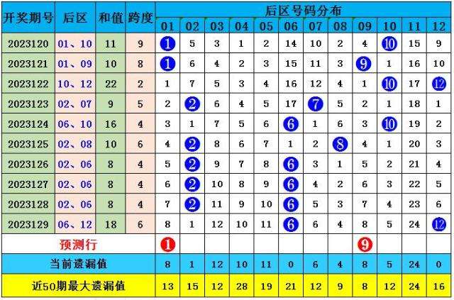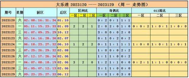 后区分析:上期后区开出号码06、12,为小大偶偶组合。上周一后区奖号为02、06,小小偶偶组合。近10期后区奇偶比为4:16,近5期奇偶比为0:10,本期后区预计小大奇奇组合热出,重点关注两码:01、09。