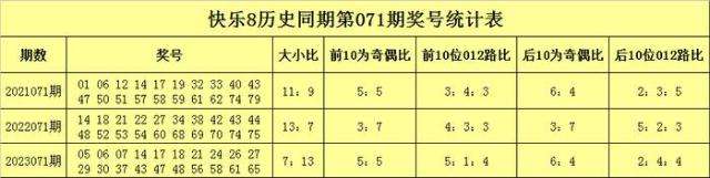在第071期历史同期开奖中,后10为号码012路比为9:9:12,其中2路号码表现较热,0、1路号码走势较冷,去年同期后10位号码012路比为2:4:4,1、2路号码较热,0路号码较冷,今年同期预计后10位1、2路较热,0路走冷,关注号码37、40、44、46、54、55、59、62、74、78。