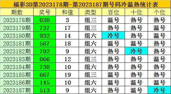 上期回顾:福彩3D第2023187期开奖奖号为:513,奖号类型为:组六,奖号冷温热态为:热号+温号+冷号。