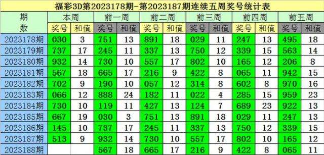 老梁福彩3D第2023188期综合推荐: