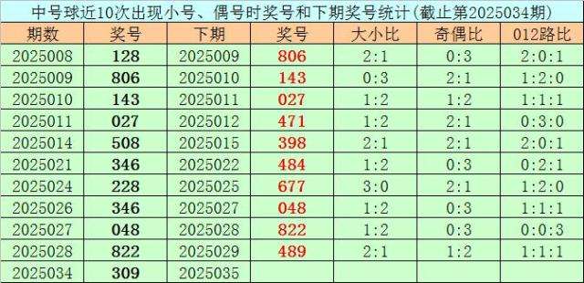 开奖回顾:体彩排列三第2025034期开出奖号309,奖号大小比开出1:2,奇偶比开出2:1,012路比开出3:0:0。