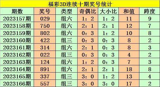 上期回顾:福彩3D第2023166期奖号:557。组三、大大大、奇奇奇。