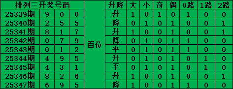 排列三是从0-9每期开出3个号码,截至2025347期三个位置最大遗漏的是27期的:百位的7号。