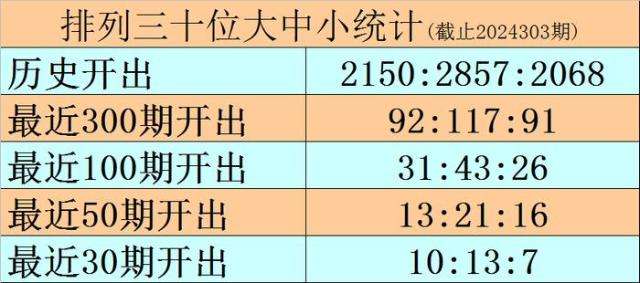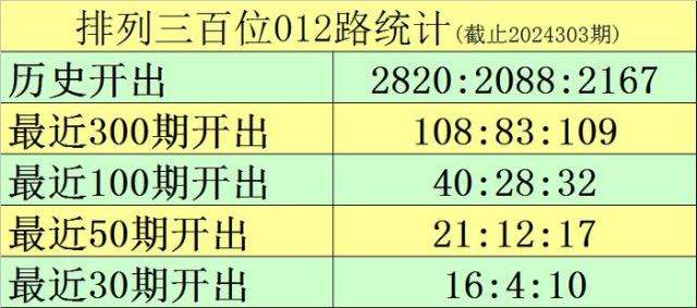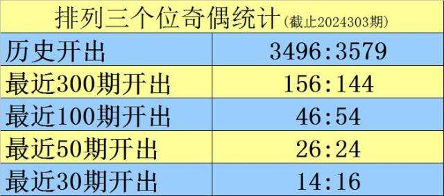 上期回顾:排列三2024303期奖号为201,类型为组六,奇偶比为1:2,大小比为0:3,和值为3。