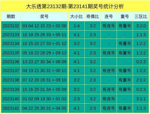 近10期大乐透奖号数据统计表