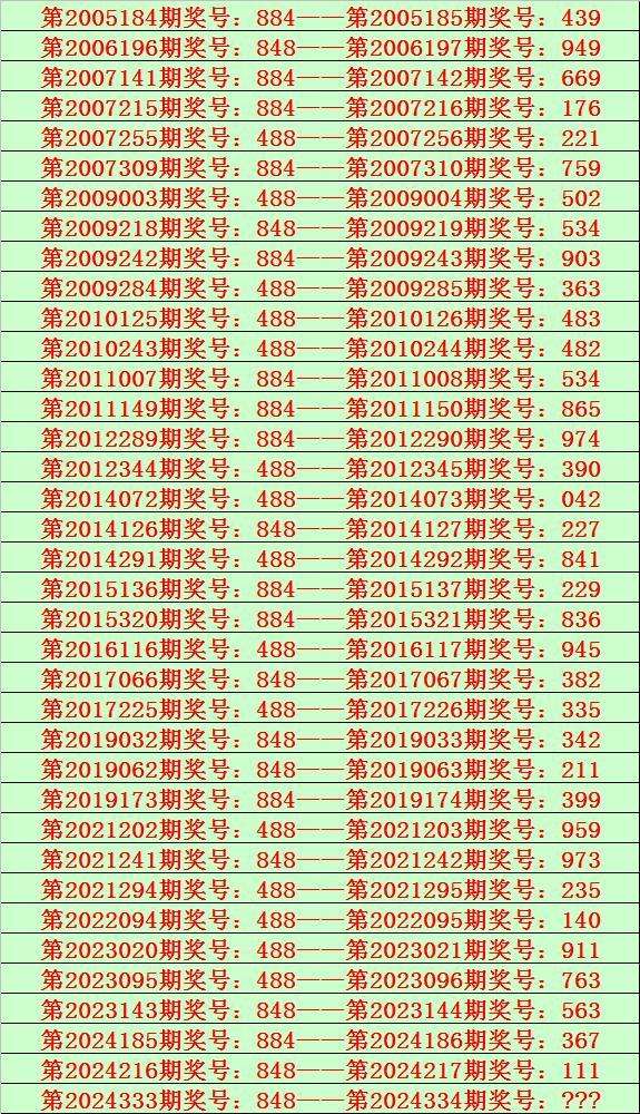 排列三第2024333期开出奖号848,该号码历史上组选出现37次,前36次开出之后期下期奖号为:439、949、669、176、221、759、502、534、903、363、483、482、534、865、974、390、042、227、841、229、836、945、382、335、342、211、399、959、973、235、140、911、763、563、367、111,详见下表: