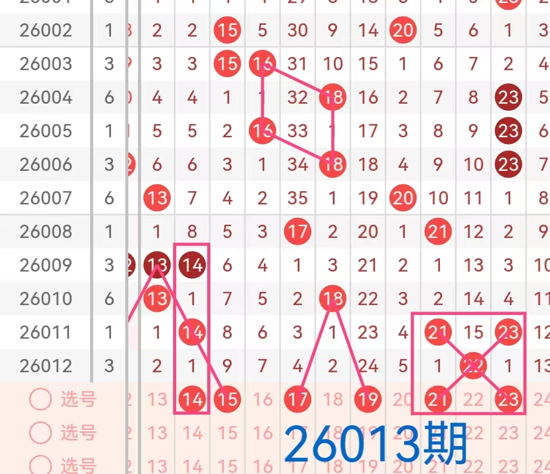3. 三区(25-35):上期该区间开出一个号码25。号码25为该期的凤尾号,在遗漏7期后再次开出。由于上期开出的凤尾号码偏小,本期预计号码会由此增大,凤尾号码预计会在本区间出现,重点关注号码30、32、34。但是观察历史开奖来看,该区间近期出号较少,因此本期考虑仍然会有1-2个号码回补开出,特别是那些近期表现较热的号码,如号码26、28本期有望继续开出,因此它们有可能成为本期的出号热点。