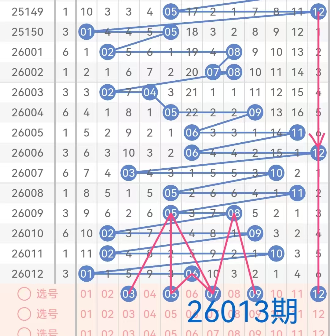 后区号码范围为01-12,分为两个区间:小号(01-06)和大号(07-12)。上期开奖号码为01和06,为两个小号的组合。