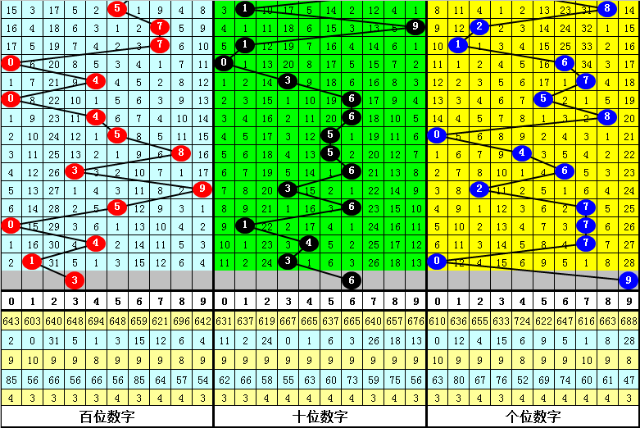 十位:上期为3,近10期012路比为6:2:2,其中0路号遗漏2期出现,本期注意0路号再出,参考6。