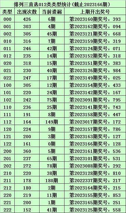 上期回顾:体彩排列三第2023166期开出奖号:128,其012路比为0:1:2,奖号012路类型为:122。