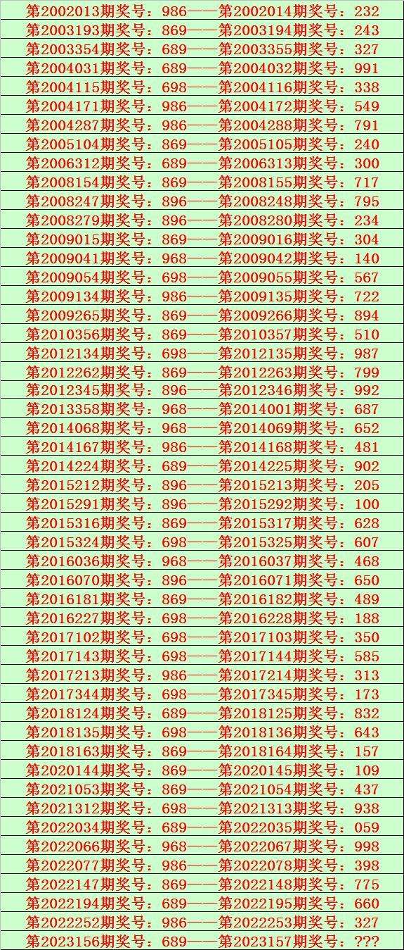 福彩3D第2023157期开奖日期:2023年6月16日,历史上第157期已开出了21次奖号,历年同期号码分别为:599、217、661、590、892、602、788、508、852、582、015、383、575、222、151、173、022、626、200、807、429。