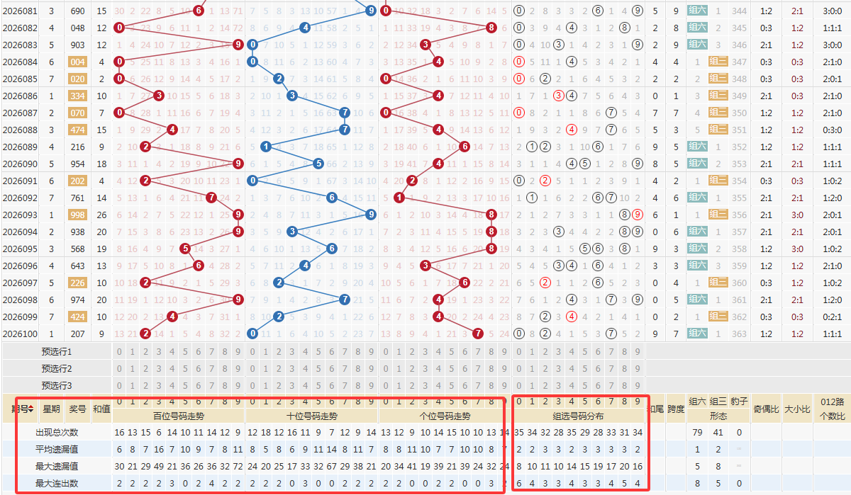 第三步:取近百期数据杀跨度/杀和值尾判