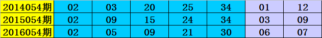在2014054期-2016054期同周期奖号中,前区连码出现1期,同尾号出现1期,号码奇偶比7:8,大小比7:8,号码012路比7:3:5,前区开出11个号码。