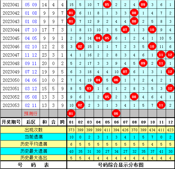 历史号码分析:在大乐透第054期同期奖号中前区连码出现概率为38%,同尾号出现概率为38%。后区第一位0、1路出现概率为88%,第二位0、1路出现概率为75%。