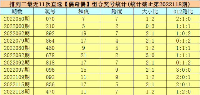 排列三上期奖号为470,开出奇偶类型为【偶奇偶】,前10次【偶奇偶】类型奖号分别开出:070、210、892、854、450、678、818、096、092、836;