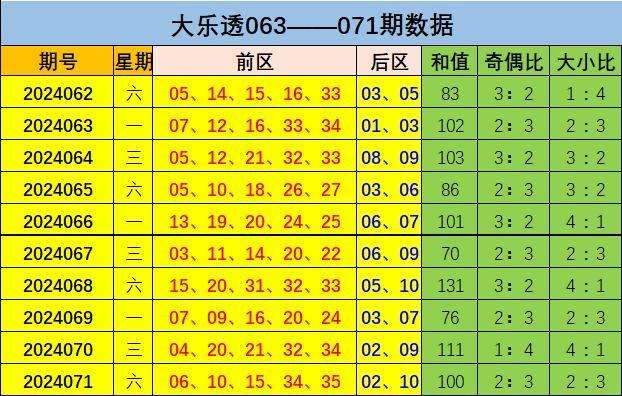 大乐透上期奖号为:前区06 10 15 34 35,后区02 10;和值100,奇偶比为2:3,大小比为2:3。