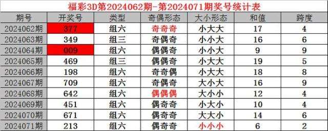 上期回顾:福利彩票3D第2024071期开奖结果213。奖号:偶奇奇、小小小,和值6,跨度2。