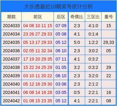 开奖回顾:大乐透第2024042期奖号:01、08、15、23、35+05、12。其中奇偶比为4:1,三区比为2:2:1,开出1枚重号08。