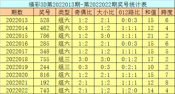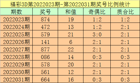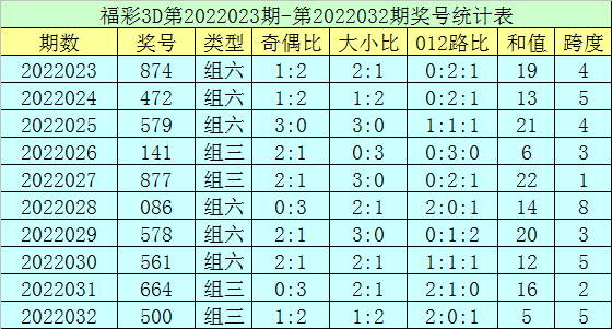 上期回顾:福彩3D第2022032期开奖号码为500,组选类型为组三,奇偶比为1:2,大小比为1:2。