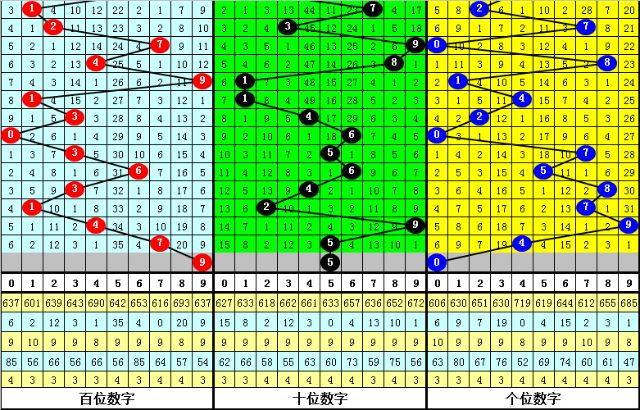 其中,百位奇偶比为6:2,大小比为4:4,本期百位一码参考9。