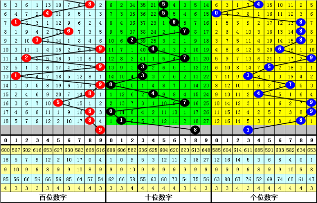 三、体彩排列三前9周星期三奖号分别开出:460-341-538-846-047-994-683-854-935,其中号码012路比为12:8:7,奇偶比为12:15,大小比为14:13;