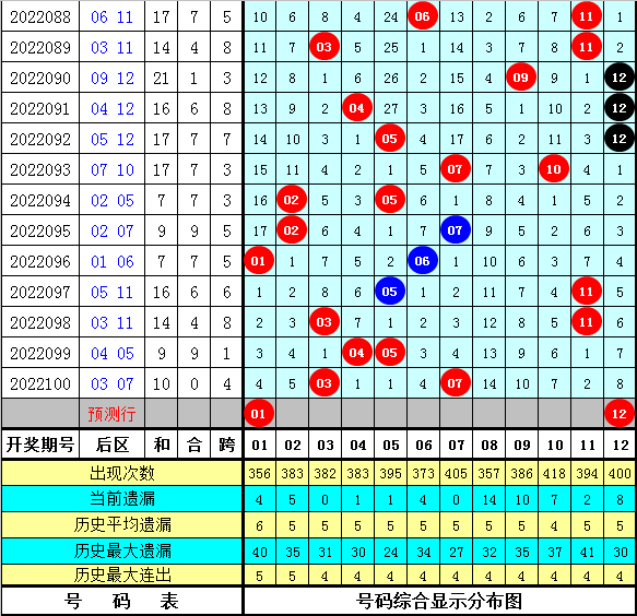 后区5码参考:01 03 10 11 12