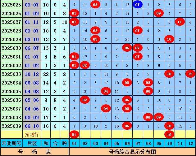 后区分析:上期后区开出奖号06和10,分析后区最近10期奇偶个数发现,偶数较热,出现15枚,本期预计奇数号码逐渐回补;最近10期后区大小走势为:小大-小大-全小-全大-小大-小大-全小-全小-全大-小大,本期后区看好小大组合,看好两码01、10。